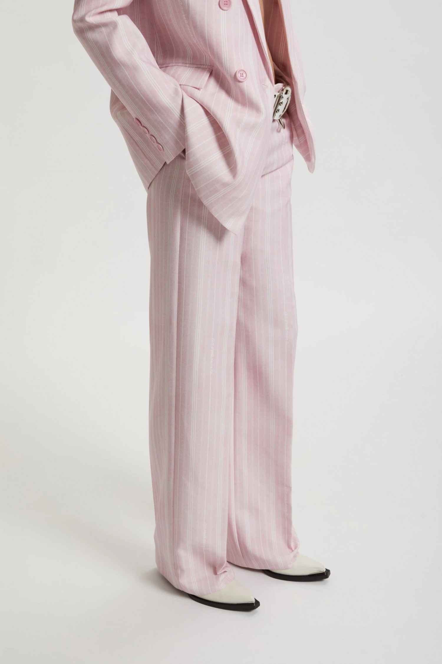Elastyczne spodnie cadi z nadrukiem w prążki i kursywą. Tekstura imitująca dżins, regularny krój z prostymi nogawkami, pas z ukrytym zapięciem na haftkę i kieszeniami bocznymi.