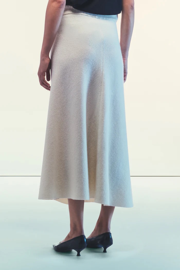 DŁUGA SPÓDNICZKA Z RECYKLINGOWANEGO KASZMIRU Z ELASTYCZNĄ PASEM DLA WYGODNEGO DOPASOWANIA. DŁUGOŚĆ MIDI, MIĘKKI I LEKKI FASON.
