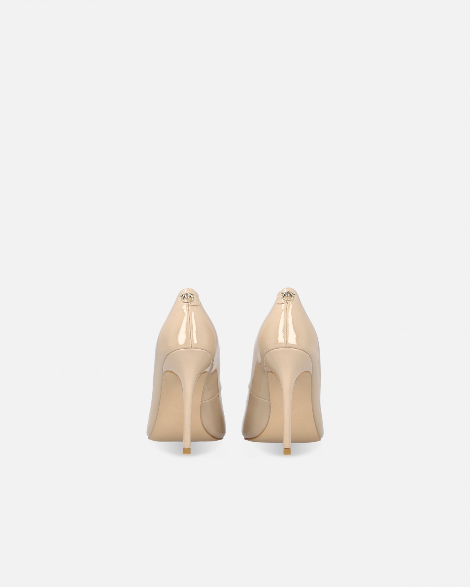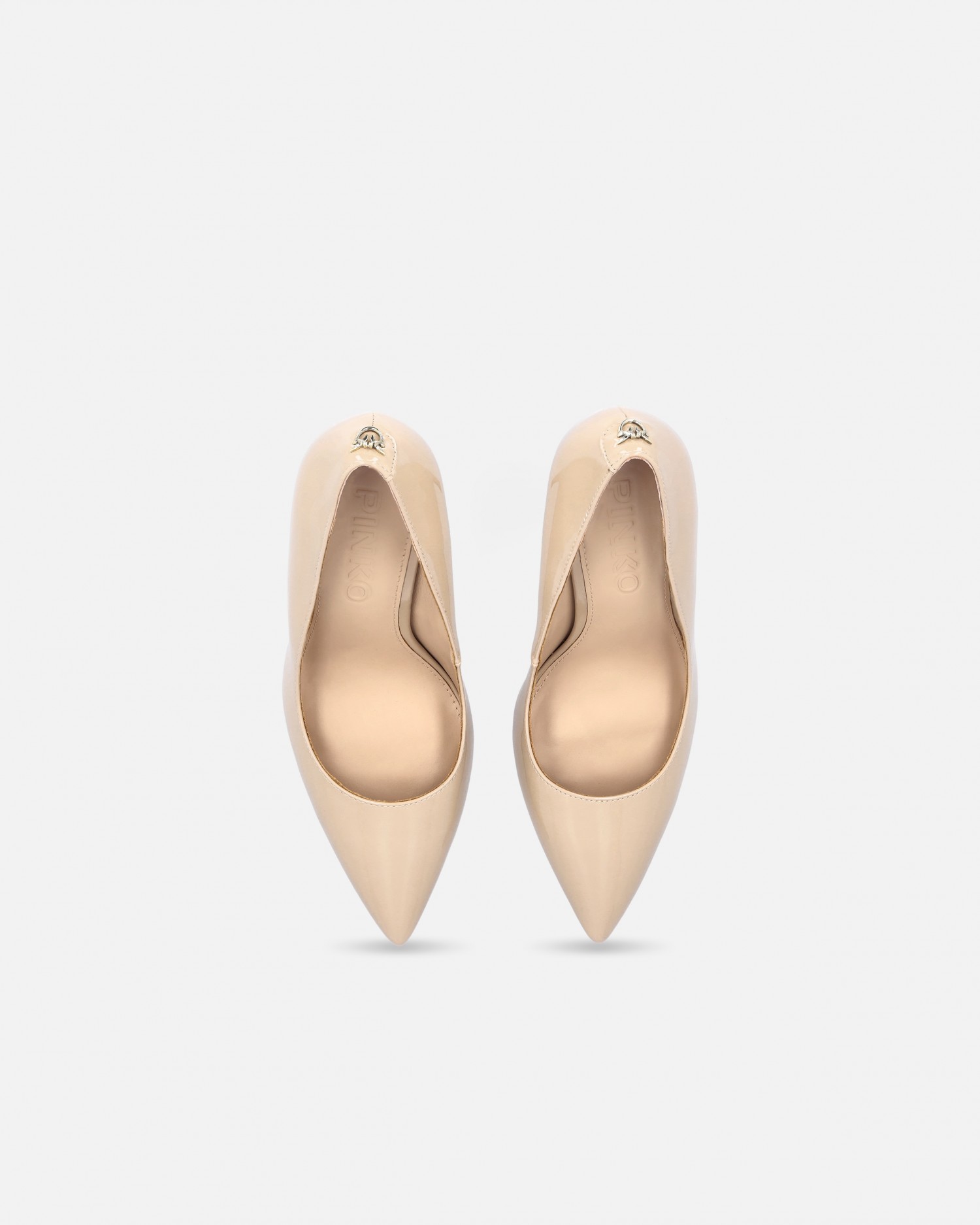 Czółenka z lakierowanej skóry imitującej skórę, ze zwężanym noskiem i miniaturową plakietką z logo Love Birds na pięcie. Podeszwa wykonana z tunitu, materiału syntetycznego o właściwościach zbliżonych do skóry, 10,5-centymetrowy obcas typu szpilka oraz skórzana wyściółka i wkładka.