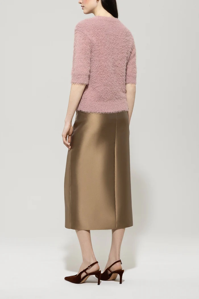 Jednokolorowy sweter z dzianiny z okrągłym dekoltem i rękawami o średniej długości. Miękka przędza o wyglądzie sztucznego futra gwarantuje przytulne uczucie.