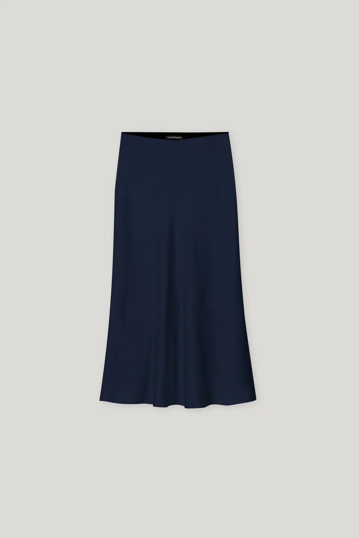 Długa, rozkloszowana spódnica wykonana z kobiecej, lejącej satyny o eleganckim połysku. Dzięki elastycznemu paskowi w talii spódnica jest dobrze dopasowana i wygodna.
