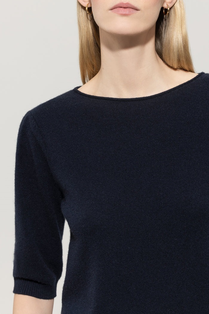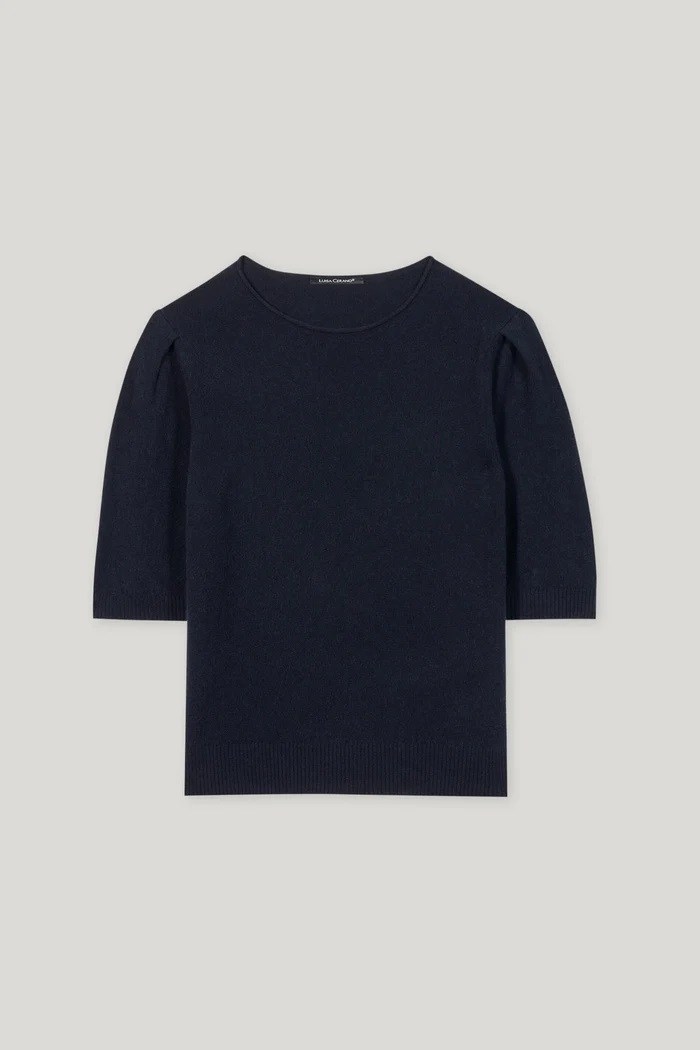 Luźny sweter z szerokim okrągłym dekoltem wykonany z wyjątkowo miękkiej mieszanki kaszmiru. Półdługie rękawy mają ozdobne plisy.