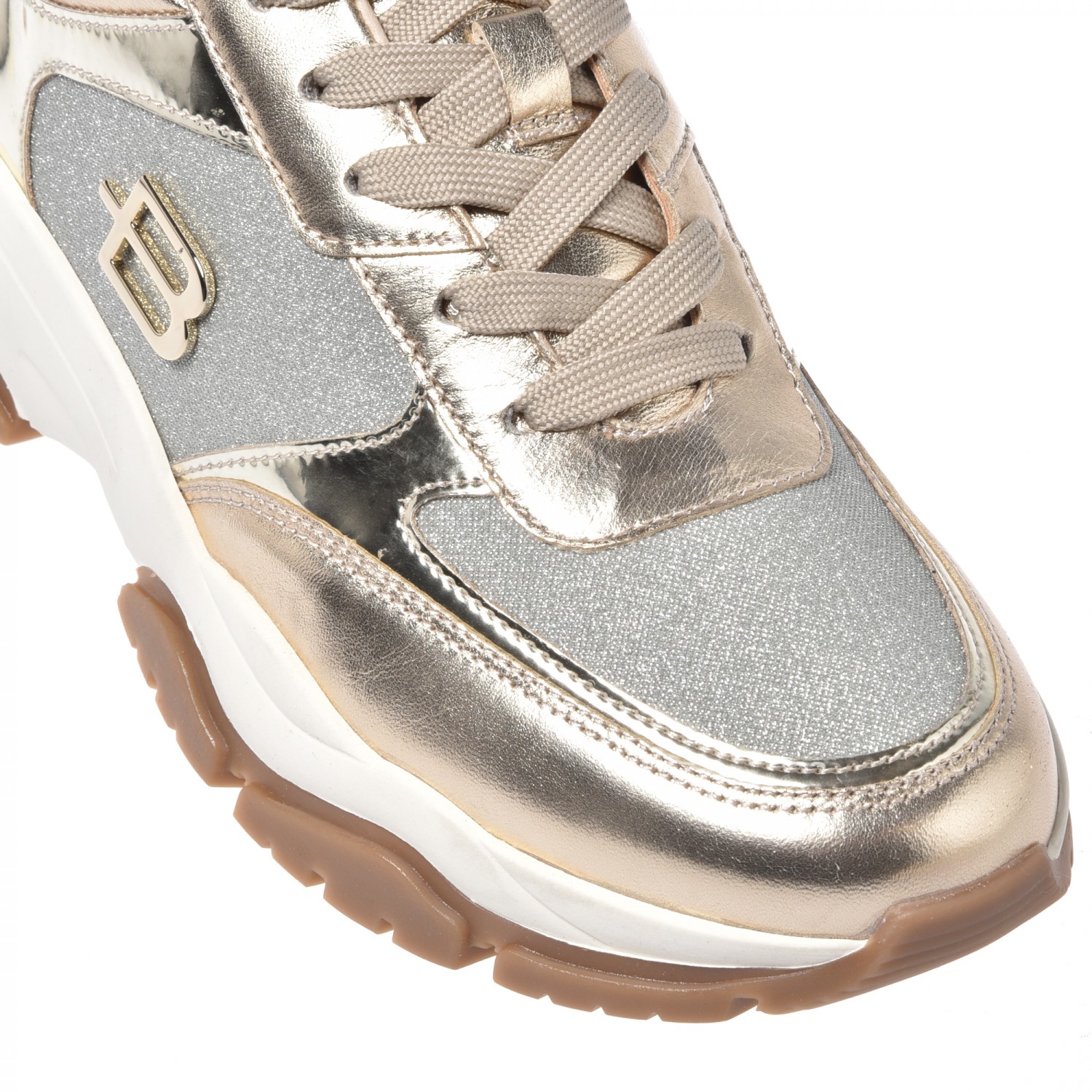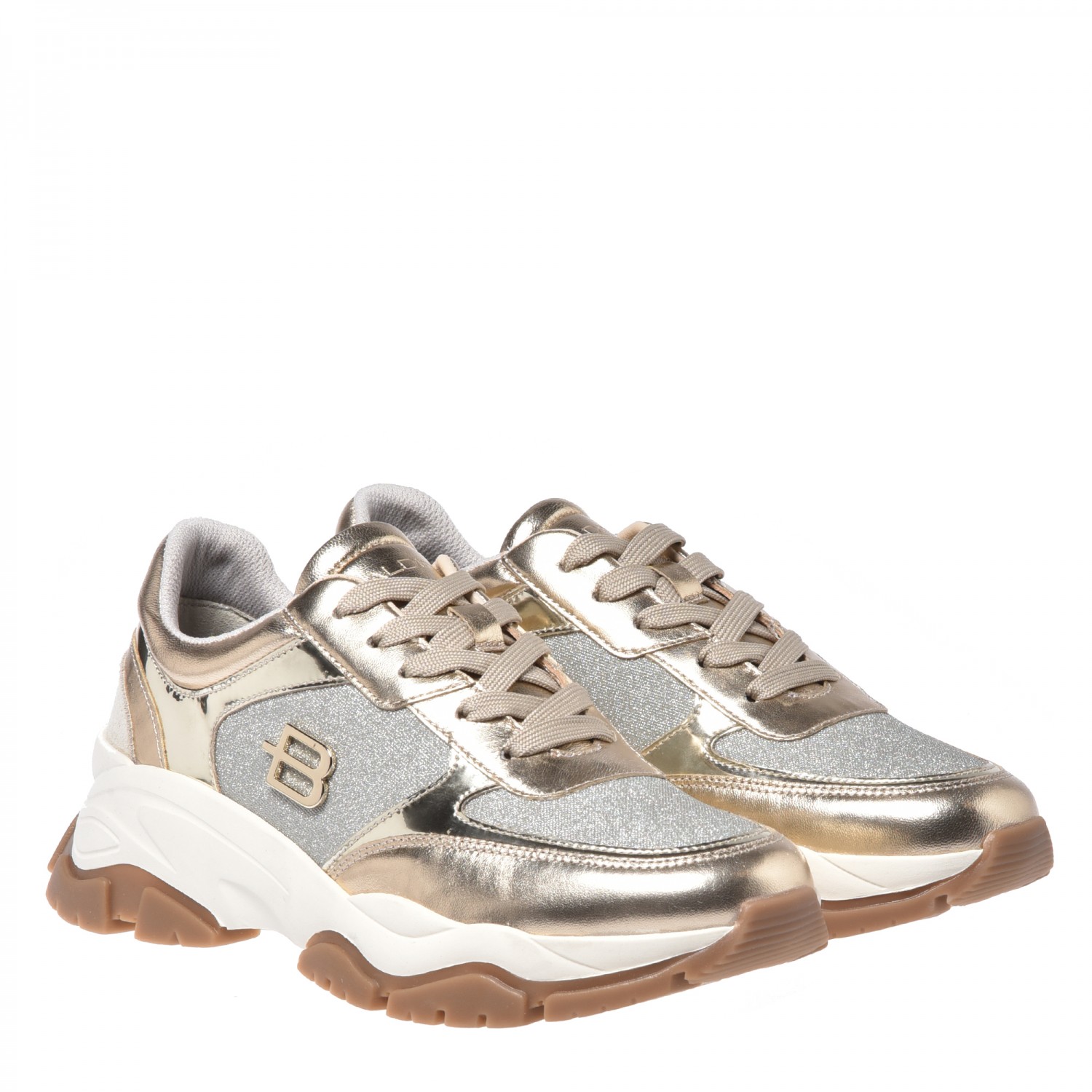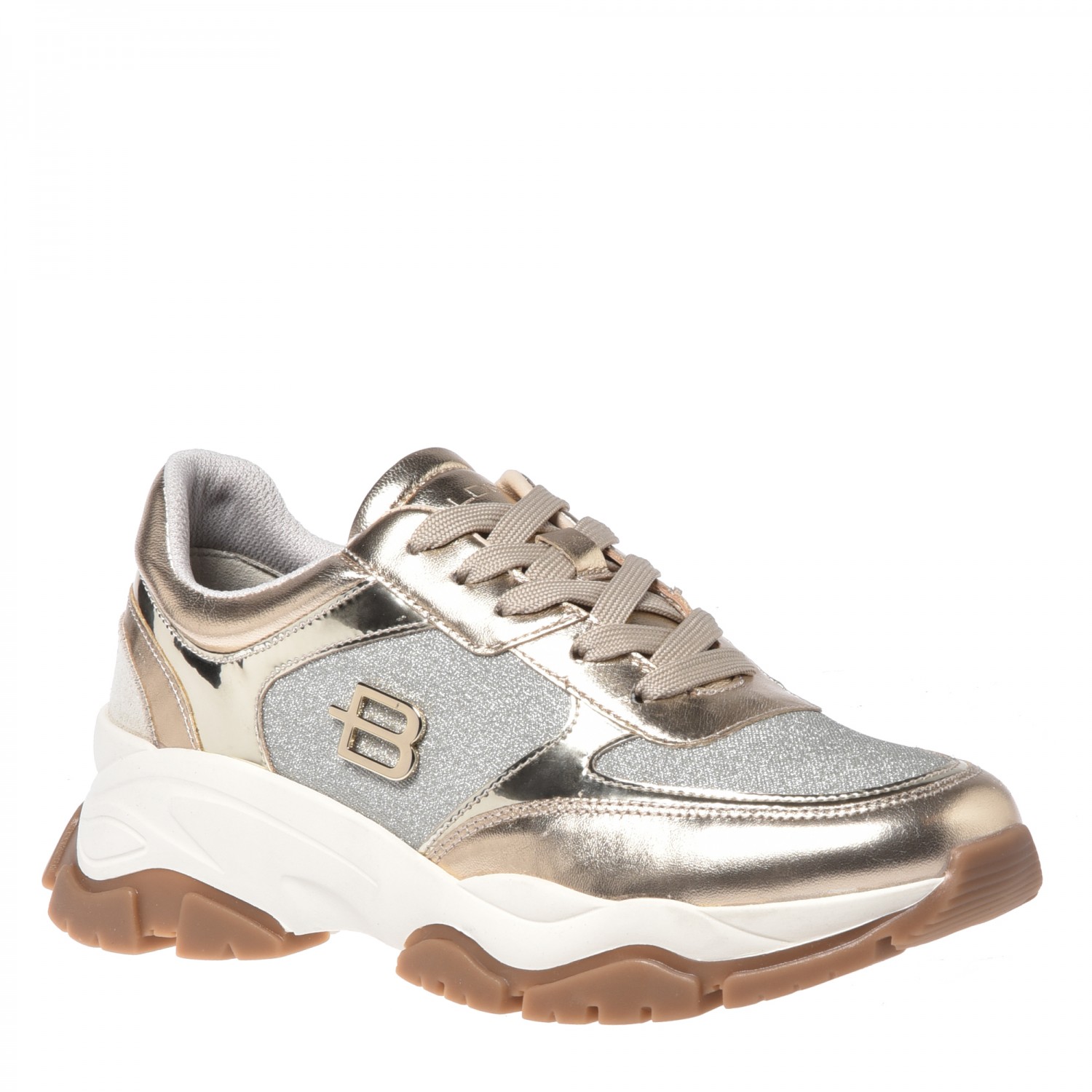 Stylowe sneakersy marki Baldinini wykonane z wysokiej jakości skóry naturalnej i materiału.