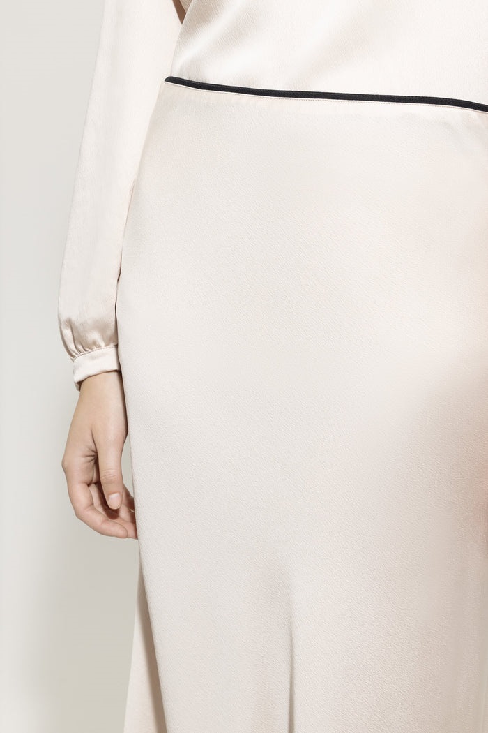 Długa spódnica wykonana z ciężkiego, elegancko błyszczącego jedwabiu techno o lekko rozkloszowanym, lejącym kroju. Wygodny elastyczny pas zapewnia bezpieczne dopasowanie.