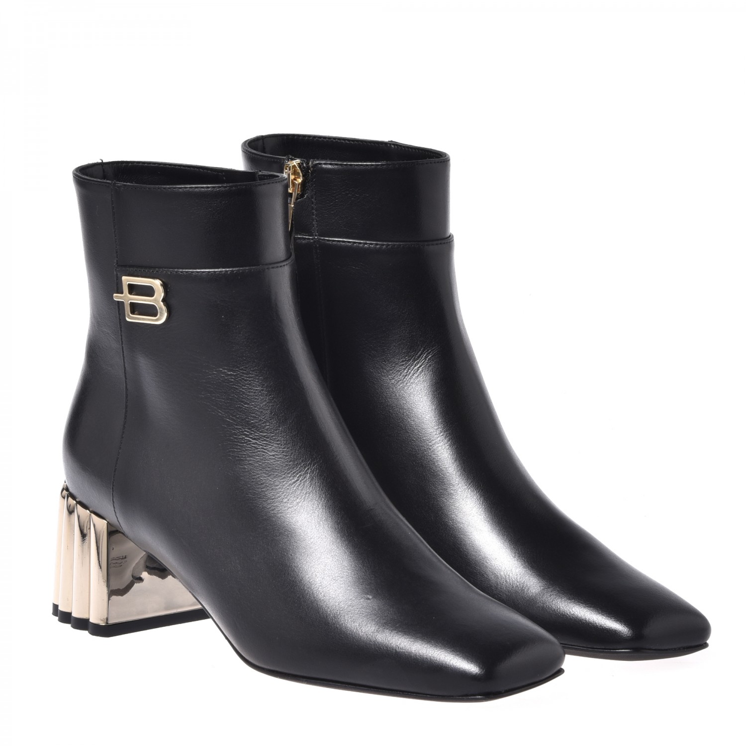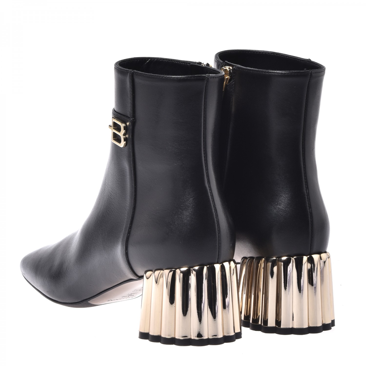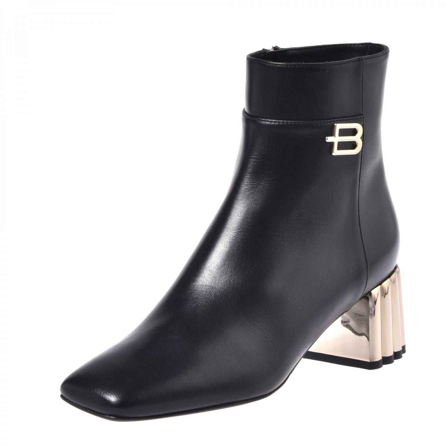 Uzupełnij swój styl obuwiem marki Baldinini. Te botki w czarnym kolorze oferują nowe spojrzenie na klasyczny design. Złoty obcas o wysokości 5,5 cm, dodaje nowoczesnego akcentu, co stanowi wygodę dla każdej kobiety. Wykonane z skóry licowej, zapinane na zamek błyskawiczny z boku buta.