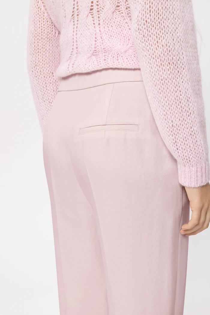 Zwężane spodnie wykonane z wytrzymałego materiału lyocell twill o przyciętej długości. Te proste, eleganckie spodnie mają dwie boczne kieszenie i wskazaną tylną kieszeń.